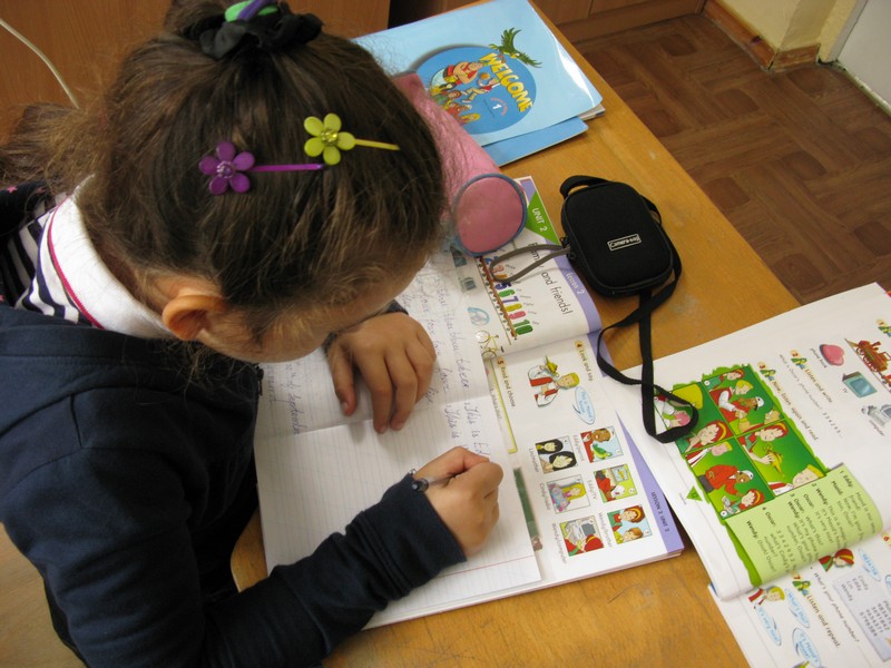 Первый месяц стал месяцем знакомства. Мы изучали и привыкали друг к другу. Герои учебника “Welcome” познакомили нас со словами приветствия и прощания, научили оценивать свою работу и работу своих одноклассников. Также они помогают нам освоить буквы и звуки английского языка, правильно читать их в словах, ставить вопросы, строить предложения и составлять короткие высказывания о себе и об окружающих. Дети с большим интересом и охотой справились с первой проектной работой этого месяца “About myself”, которая показала первые результаты навыков письма и говорения на английском языке.