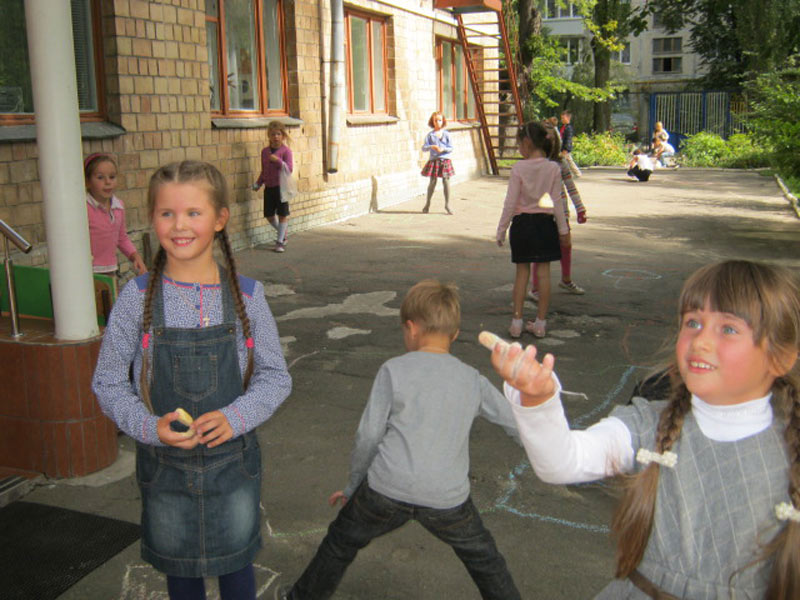 Помимо активных игр, мы успели мгновенно преобразить цветными мелками наши серые асфальты!