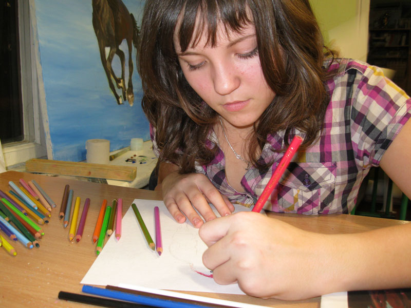 Художественную студию посещает около 70 человек. Старшеклассники, уже имеющие опыт работы на студии, могут заглянуть на 3-4 сеанса, нарисовать новую картину и снова погрузиться в подготовку к экзаменам, работе над проектами.