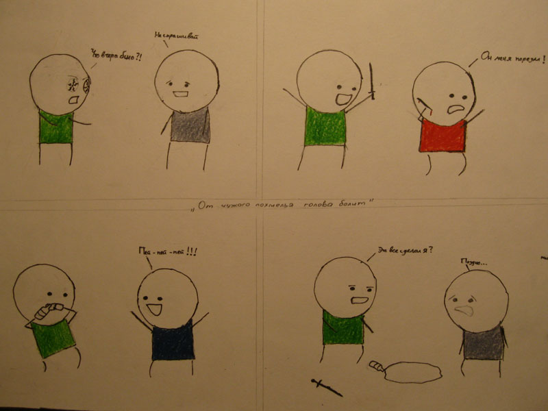 Или не менее замысловатая задача. Нарисуйте поговорку  “Потерявши голову, по волосам не плачут”, “Чья  бы корова мычала…” и.т.д