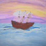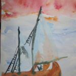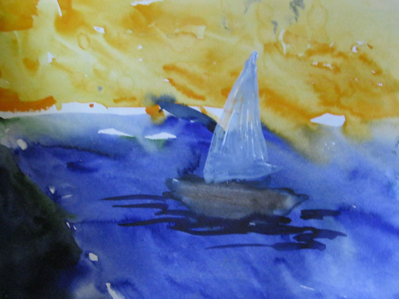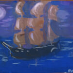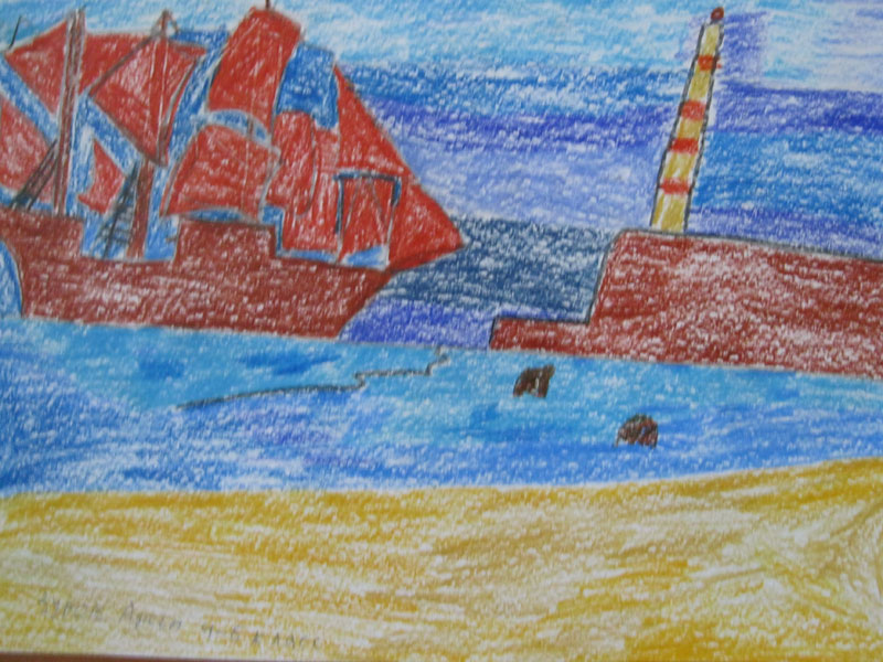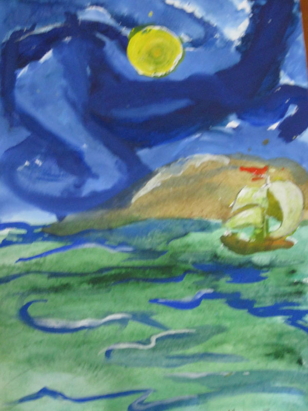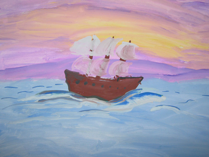Вот, что получилось у нас. Эти картины сделали наши самые маленькие. И целых 10 дней экспонировались в начальной школе на нашем вернисаже “Юные художники-маринисты”.