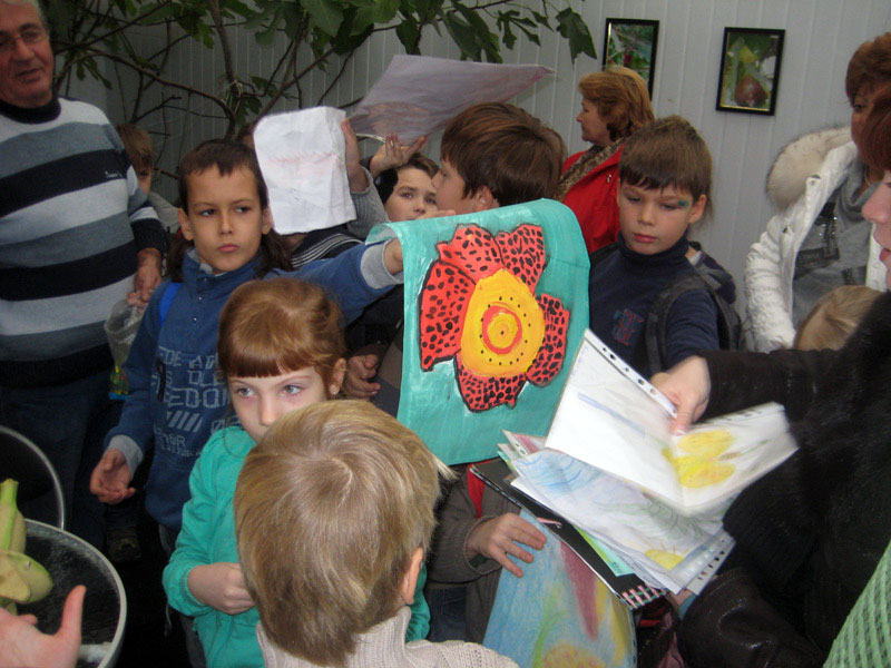 Нам посчастливилось посетить эту чудо-оранжерею. Ребята не только получили ценную информацию о растениях, но и приняли участие в викторине и в конкурсе рисунков. Лучшие работы были награждены редкими экспонатами оранжереи.