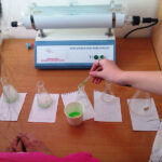 Была категория детей, для которых интересно было проводить именно практическую часть опыта, измерять количество необходимых компонентов реакции и т.д. Отдельные ученики способны анализировать полученные данные и этапы исследования и, как результат, обучать других детей. Так получилось очень хорошо у Матвея Тихомирова и Глеба Соломонова, а также Саши Лисниченко и Дани Гелиоса. Некоторые образцы воды для практической работы ребята принесли сами.
