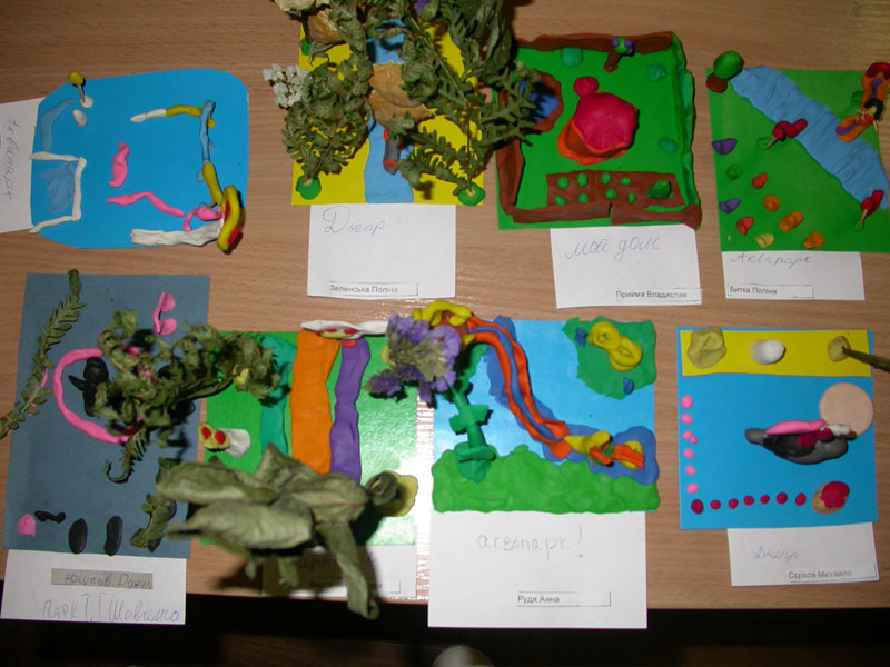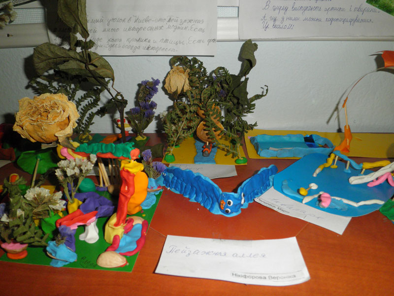 В рамках проекта «Киев в миниатюре» ученики изобразили любимые уголки миниатюрного Киева. К этой работе они подошли с большим энтузиазмом. Каждый из них хотел передать не только все прелести любимого уголка, но так же детям хотелось туда добавить что-то своё, то, чего не хватает, но очень нужно им.
