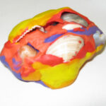 2. Положи сверху ещё два слоя пластилина, также посыпав их ракушками. А потом накрой их ещё двумя слоями пластилина, но ничем не посыпая.