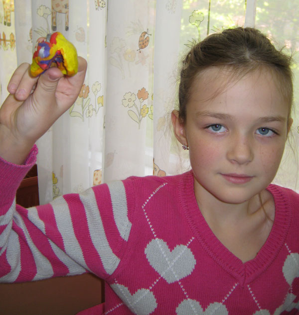 Нам понадобилось взять 5 шариков цветного пластилина и немного ракушек и камушков.