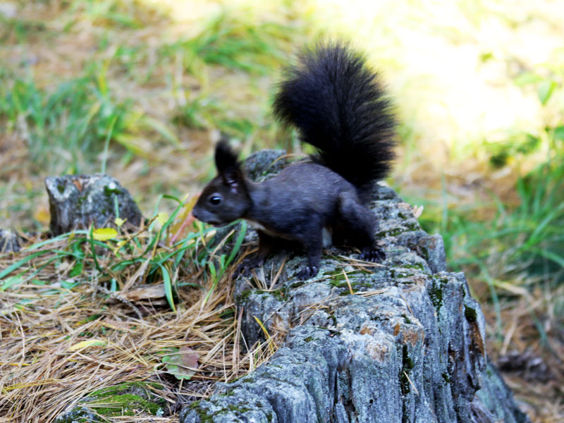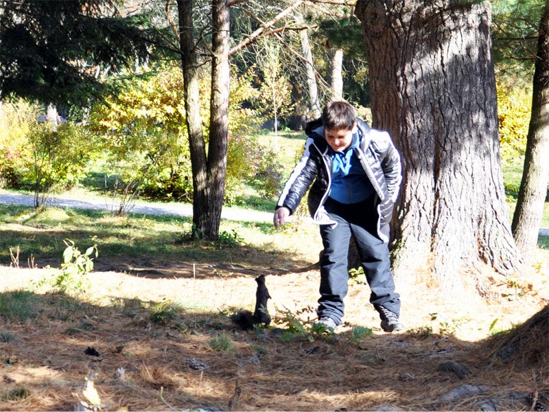А еще нашими любимцами на территории дендропарка стали чёрные белочки. Да-да, именно чёрные. Очень приветливые и задорные, они с удовольствием принимали орешки и сладости из наших рук.