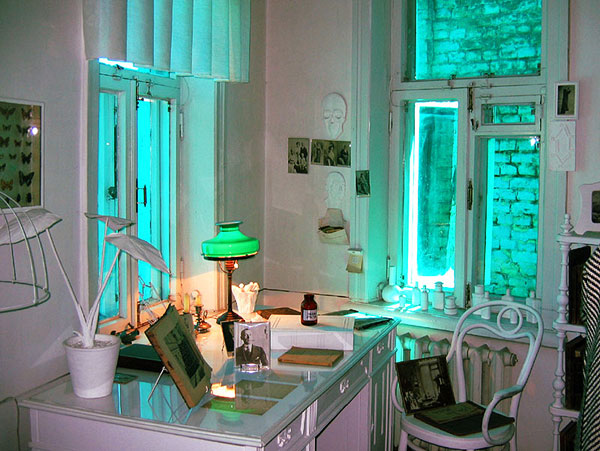 В четвертую комнату мы попали через шкаф возле стены – в шкафу находилась узкая дверь. В этой комнате жил Николай, брат Михаила Булгакова. Эта комната тоже была погружена во тьму, и это делало атмосферу еще загадочней.