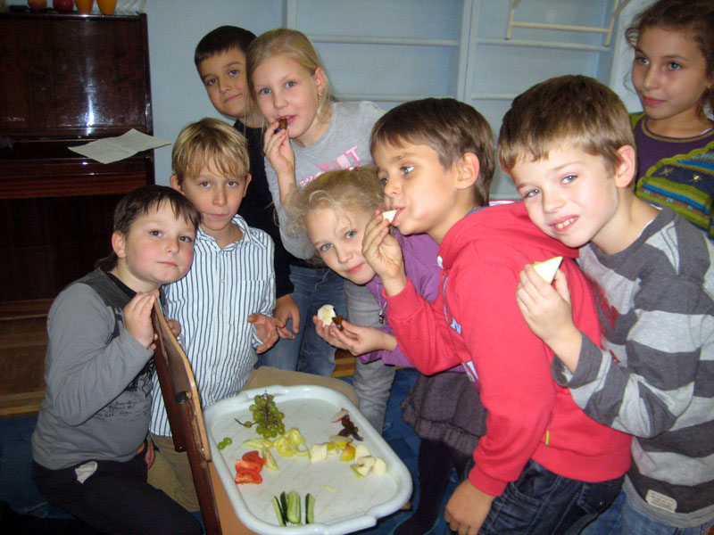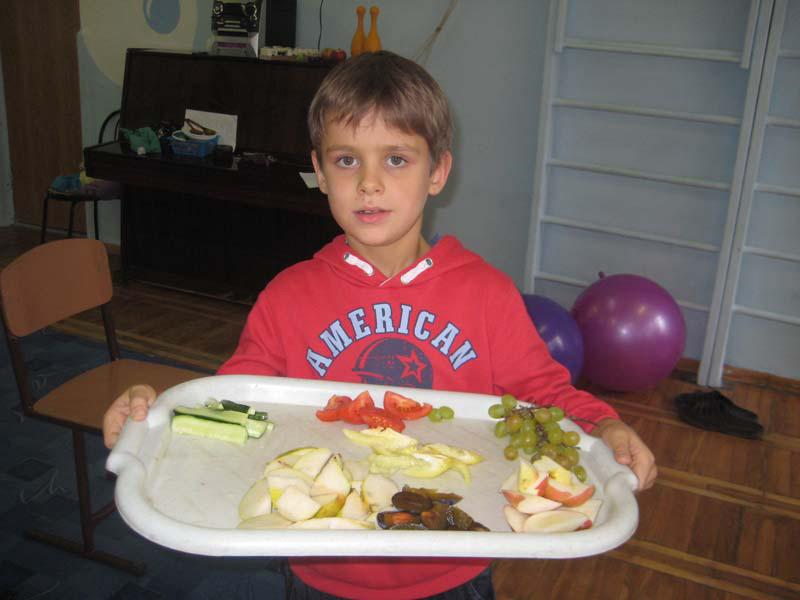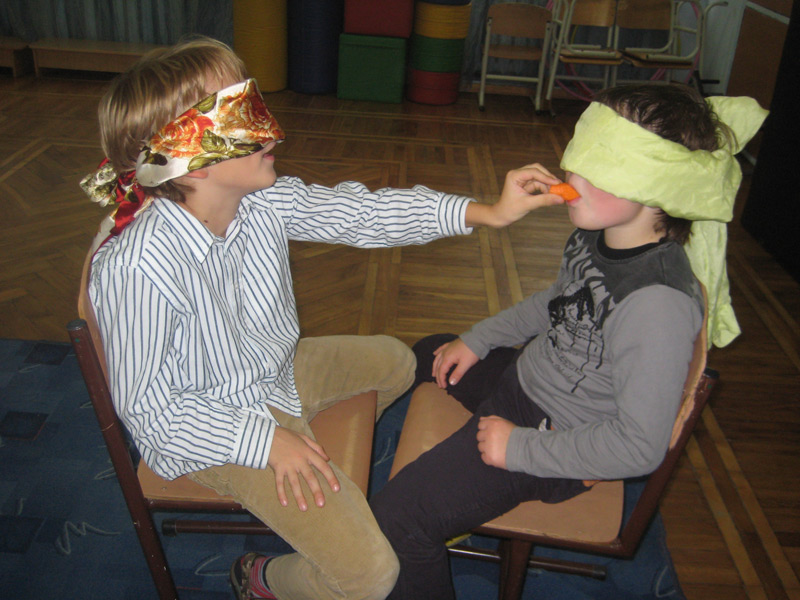 И наконец попробовать свой урожай: угадать на вкус овощи и фрукты.