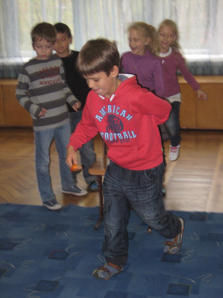 Чтобы собрать урожай со своего огорода, надо проявить ловкость и смекалку. Доскакать до огорода на “лошадке” (шарике), “вытянуть репку”, с соблюдением всех правил, собрать урожай и принести домой, нарядиться огородным пугалом и погонять птиц, покормить”зайцев” морковкой, побегать по лужам под дождём в калошах.