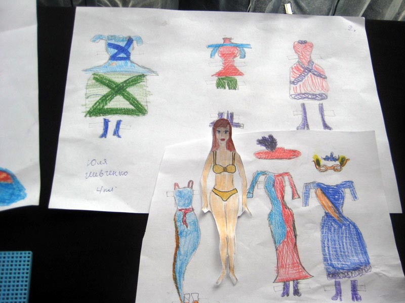 В “Модельном агенстве” были представлены модели одежды для кукол, сшитые своими руками, эскизы моделей на бумаге, различные аксессуары (браслеты, бусы из бисера или цветных нитей).