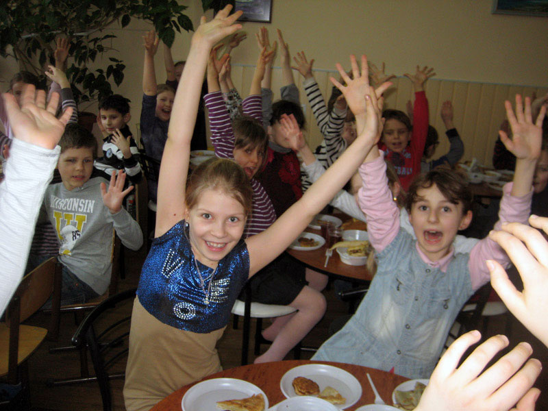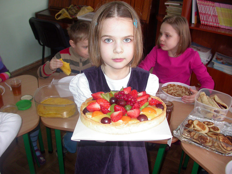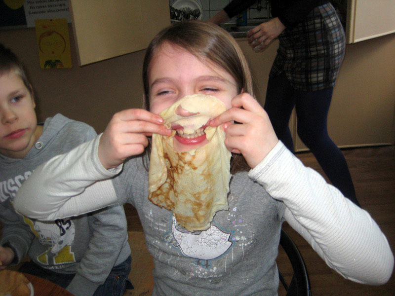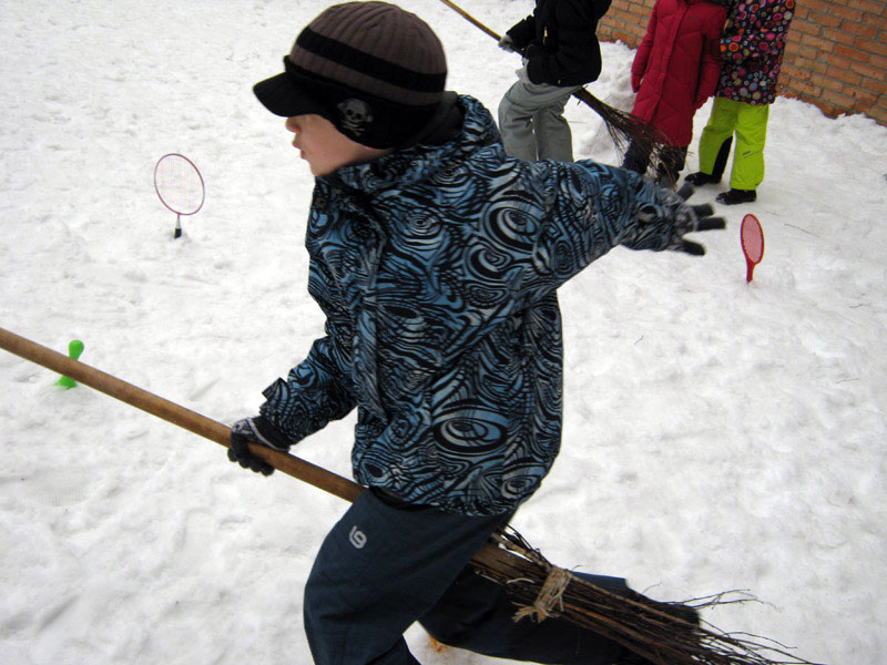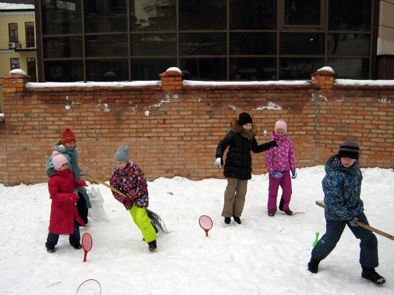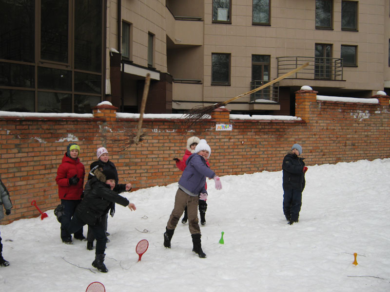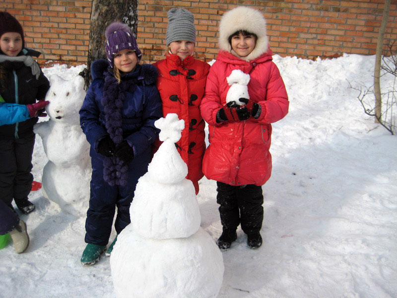И началось веселье! Мы катались на санках “паравозиком”, и наперегонки, перетягивали канат, бегали верхом на метле, метали метлу на дальность, играли в “Калечину-малечину”. Прогулка на улице закончилась победой над Зимой. Огромную снежную бабу Зиму надо было “победить”, то есть свалить. А сделать это было непросто. Ведь снеговик простоял на морозе долго и успел примёрзнуть. Но нам удалось это, хотя и не с первой попытки. Зиму мы всё-таки “победили” и отправились продолжать наш праздник в школу: пить чай с блинами, пирогами, с вареньем и печеньем!