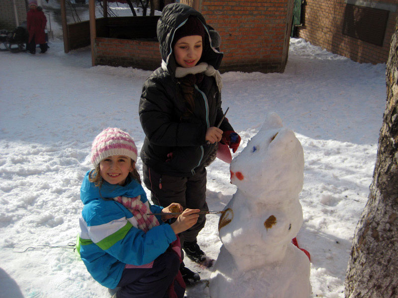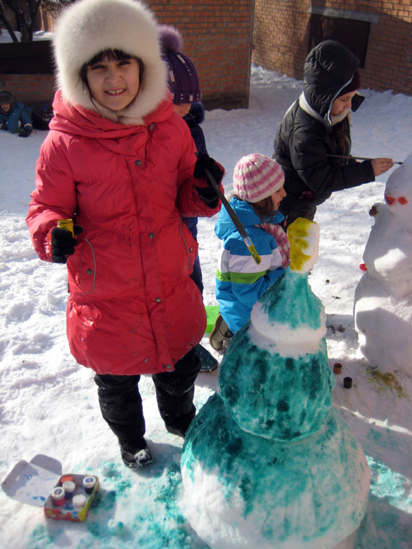 Чего там только не было: и фигурки животных, и ёлочки, и великолепная снежная баба Зима. Дети раскрасили все фигуры яркими красками, украсили их различными аксессуарами, нарядили в одежды..