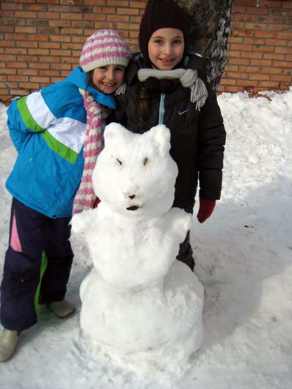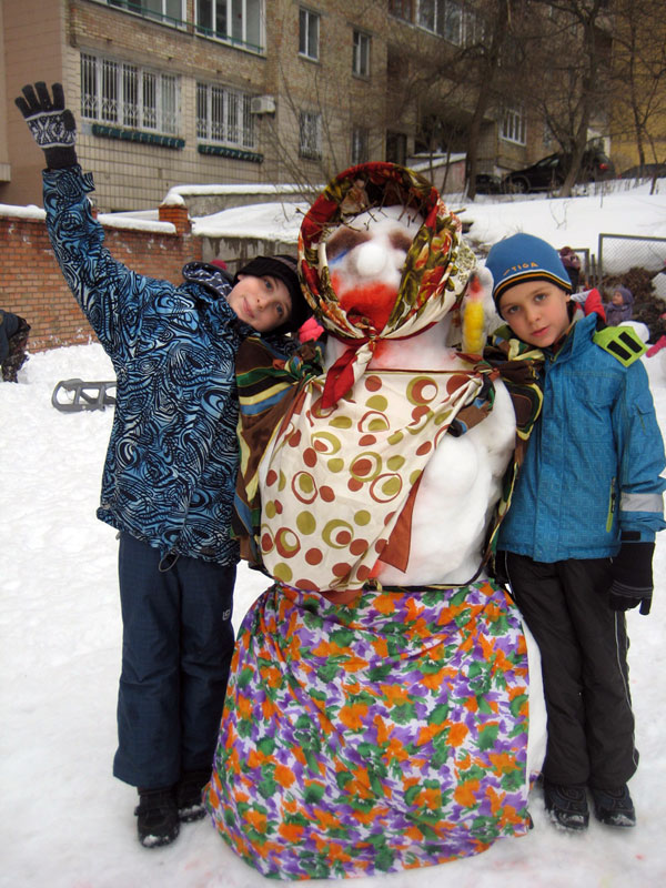 Готовиться начали заранее. Украсили школу весёлыми нарисованными блинами. На школьной площадке слепили снеговиков.