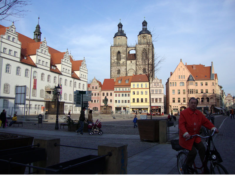 Рыночная площадь – очень красивое место в городе, ратуша, построенная в XV веке, на площади –  памятник Мартину Лютеру и его сподвижнику. На домах  часто можно было увидеть таблички с надписями о выдающихся людях, которые жили или посещали этот город, в том числе здесь бывал Петр I. Городок очень красивый (как и все в Германии).