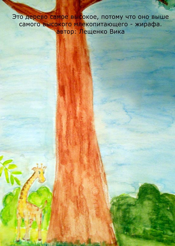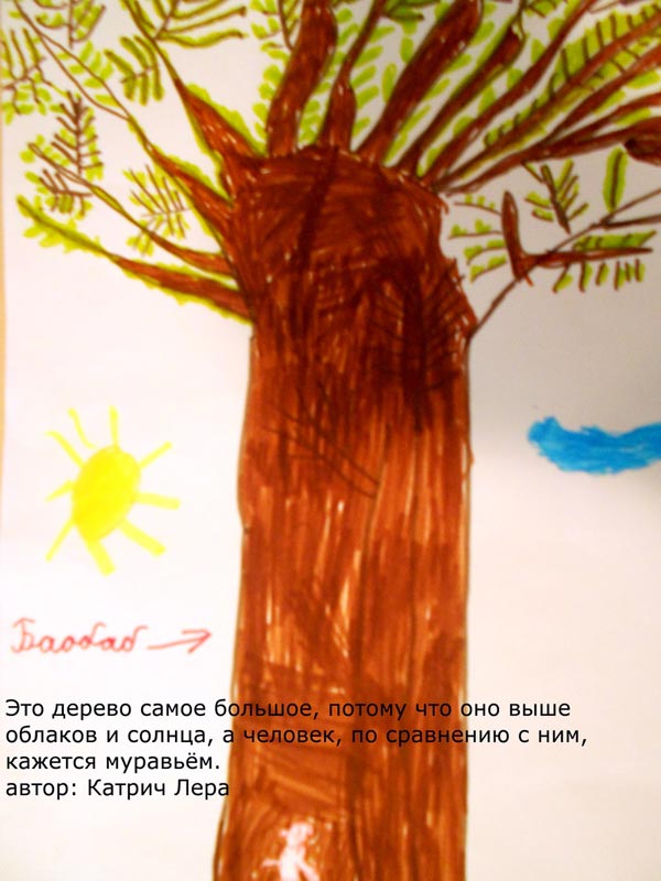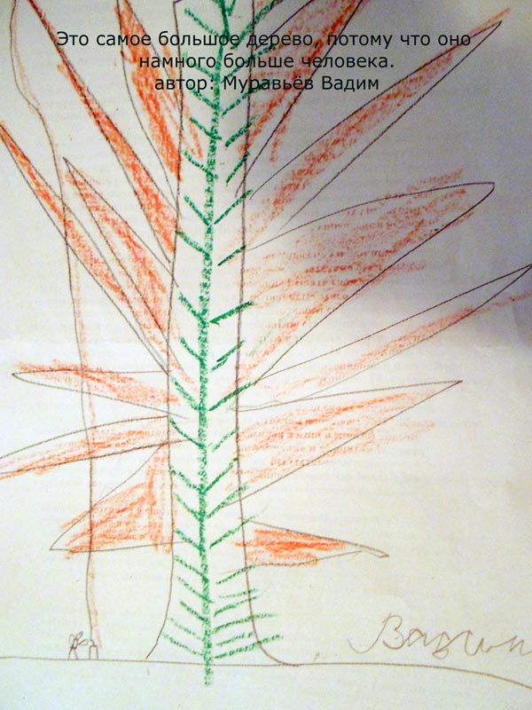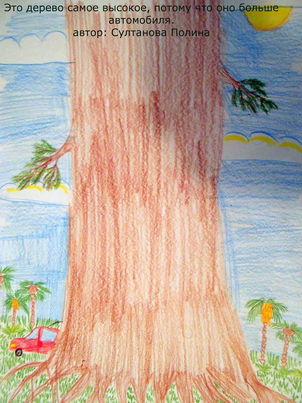 Как проверить, поняли ребята, что такое относительность размера? Надо попросить их нарисовать самое большое дерево, которое они себе представляют. Многие справились с этим заданием.