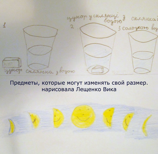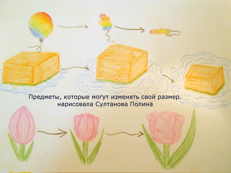 Второклассники приготовили и свои наглядные пособия, где нарисовали предметы, которые могут менять свои размеры.