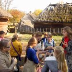 Наш екскурсовод Вікторія розповіла багато цікавого про життя та побут українців у ХVIII – на початку ХІХ століття. Ми завітали у декілька хат, дізналися, з чого вони будувалися, побачили, як виглядали тогочасні пральні машинки, праски та джакузі, зазирнули на подвір’я до священика та на майдан.