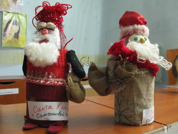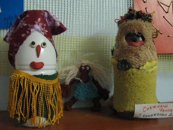 Очень интересным было то, какие образы выбрали дети для своих героев! Тут были Дед Мороз и гномик, Баба Яга и домовичок, снежный человек, невеста, байкер, солдат, врач и т.п. Все куклы получились очень забавными и все могли ними полюбоваться и поиграть! 🙂