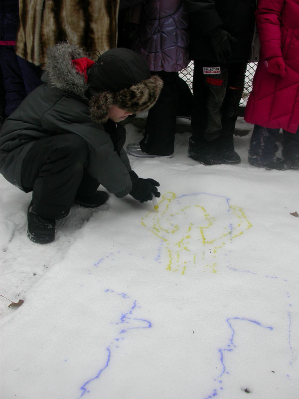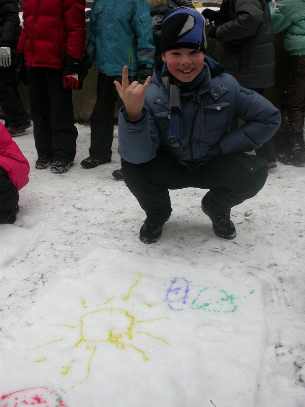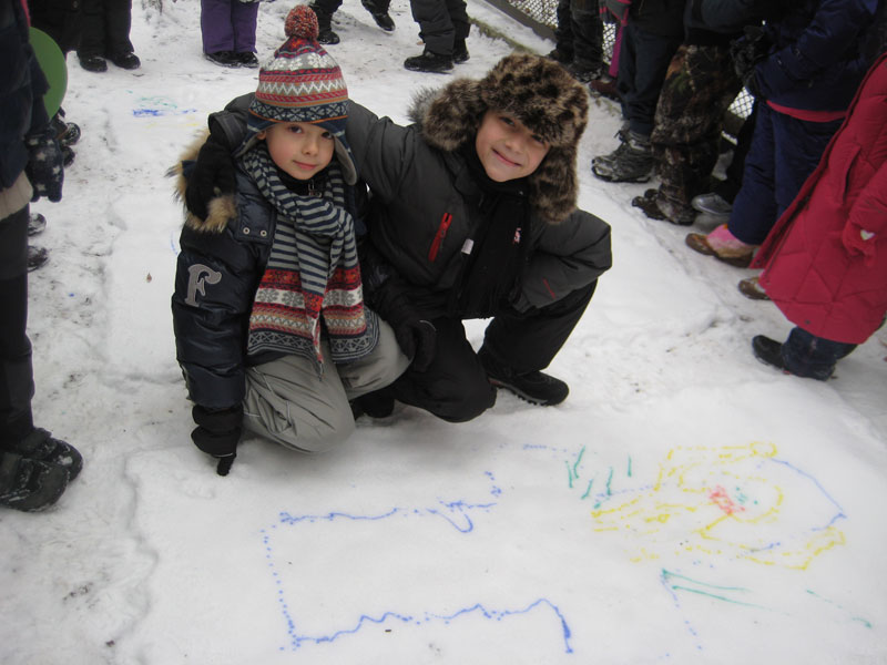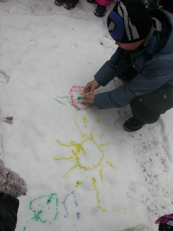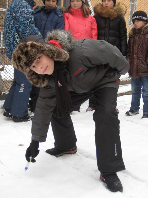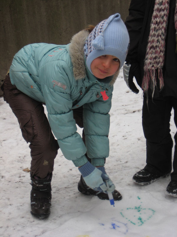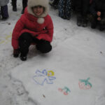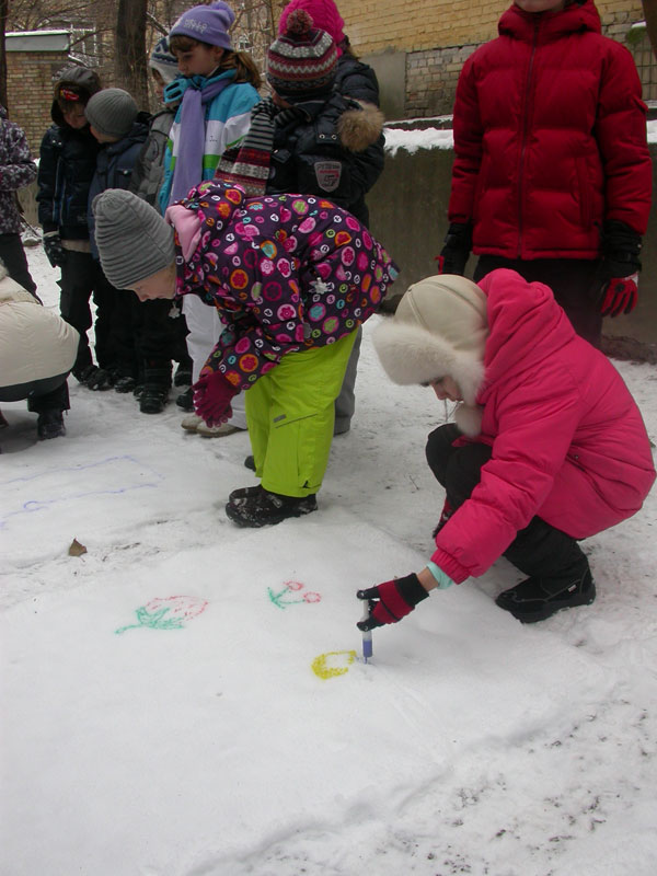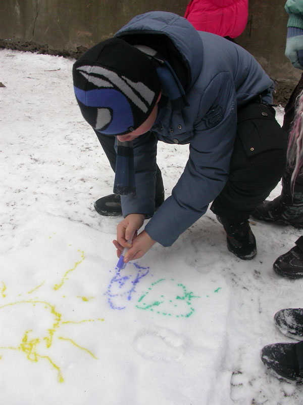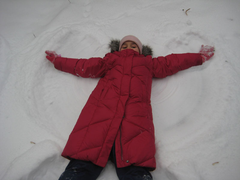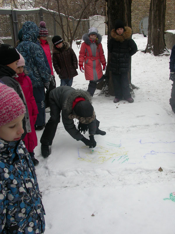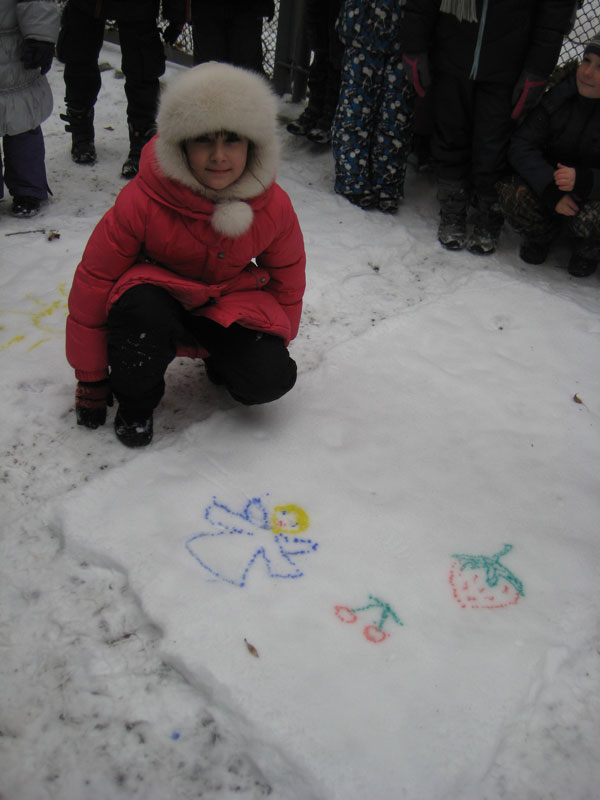 Первоначально мы решили создать ангелов-хранителей нашего здоровья. Результат вы можете увидеть на снегу (см. фото ниже). А потом… рисунки! Нет, не на бумаге! А на снегу! Это так здорово!!