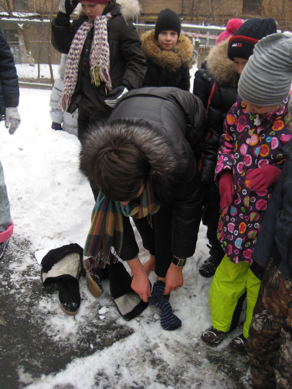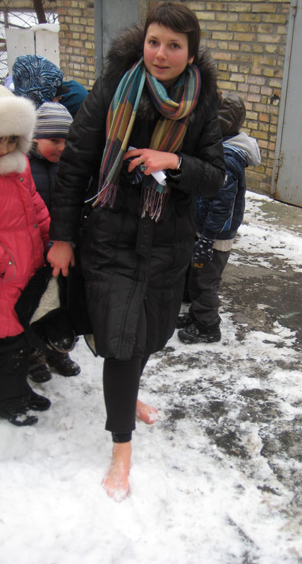 Естественно затронули и тему закалки. Ведь именно в здоровом теле здоровый дух! Обливаться холодной водой из ведра мы не стали (вёдер на всех не хватило), в Днепре тоже покупаться не удалось (не отпустили, хотя очень хотелось), даже в снегу не покачались…, зато ходили по нему (некоторые из нас) босиком! Красота!!!